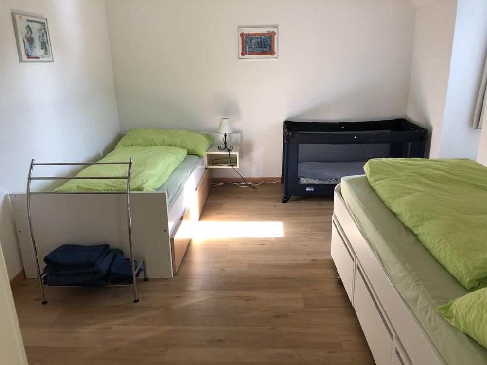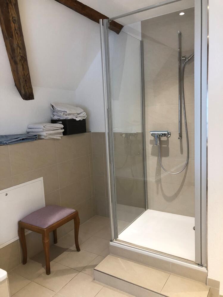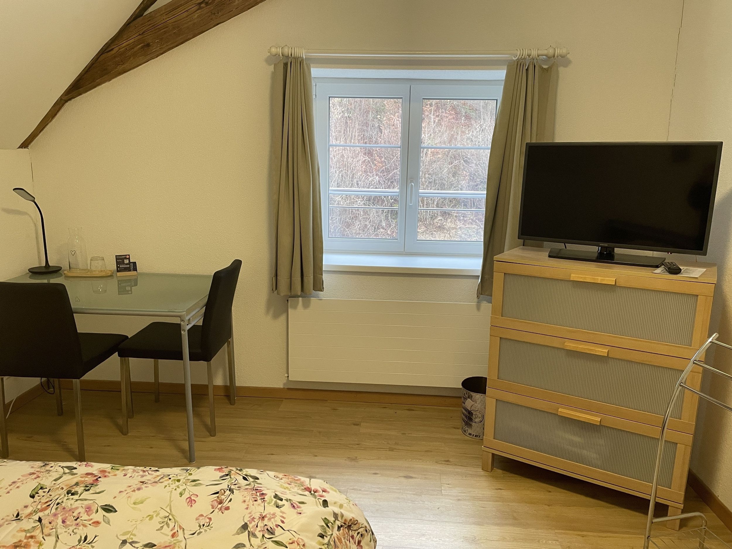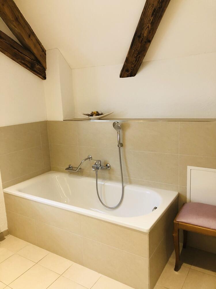 Ein Einzelzimmer mit WC Dusche, Gratis WLAN und TV im 1. Stock, sowie ein Doppelzimmer und ein Familienzimmer (Doppelzimmer mit Zugang zu Kinderzimmer) im Dachgeschoss sind liebevoll eingerichtet. Ein großzügiges Badezimmer mit Badewanne und Dusche und separatem WC befindet sich auf der Etage.