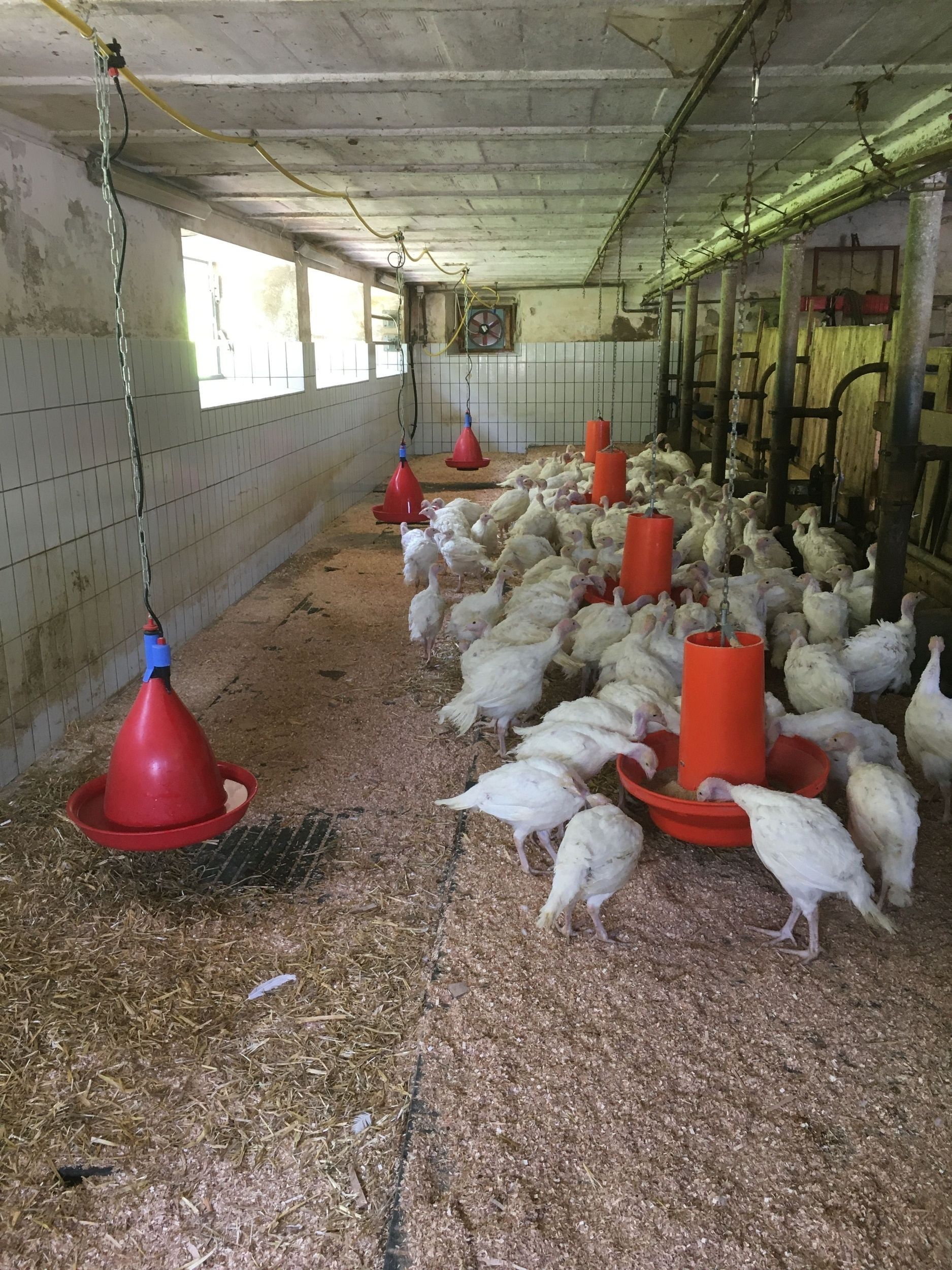 Die Truten (Hühner und Hähne) kommen im Alter von 6 Wochen zu uns. 60-70 sind es an der Zahl, die einen grosszügigen Stall mit Auslauf geniessen.
