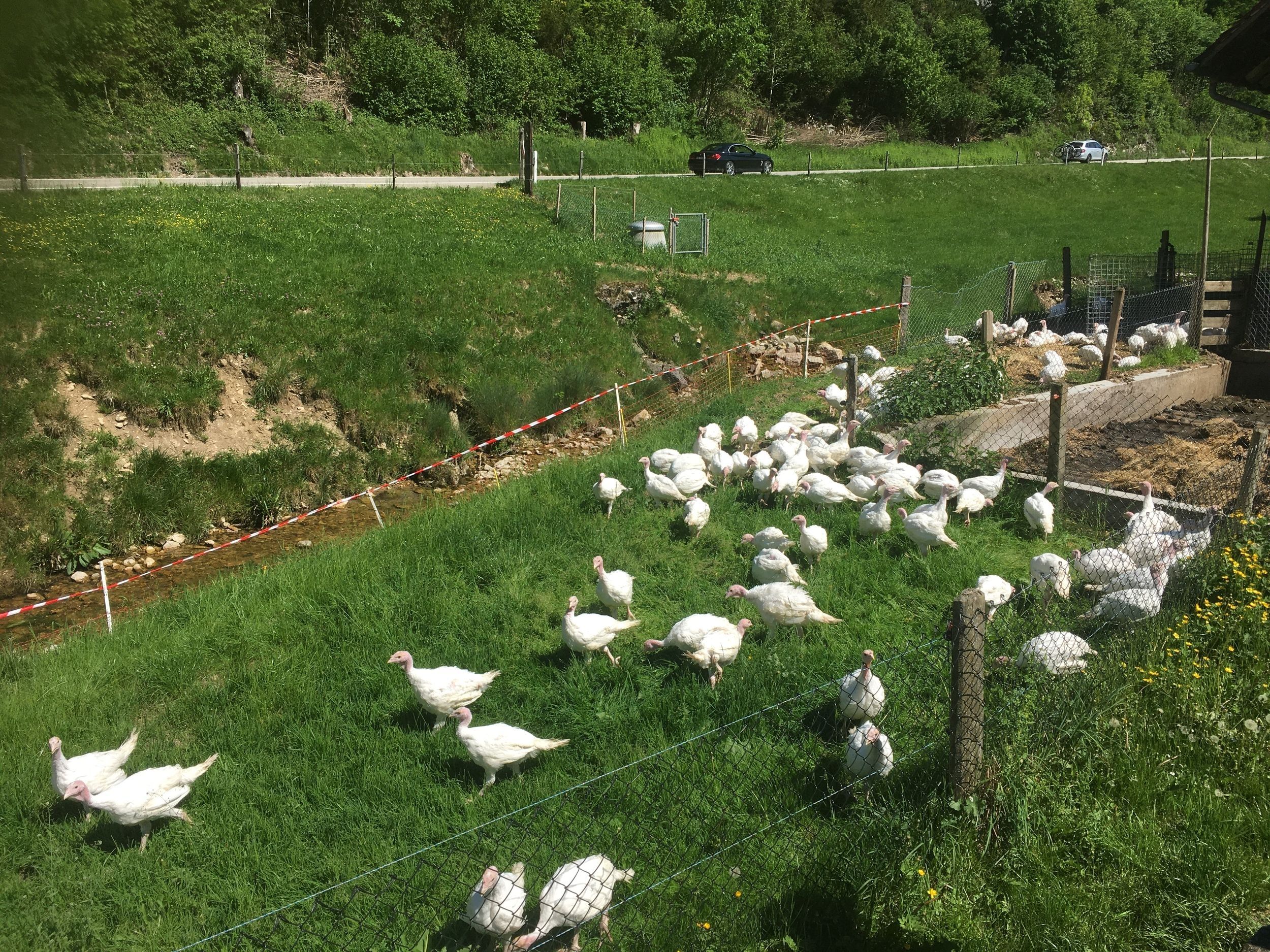 Die Weidegänse, die man beim Vorbeifahren im Bach plantschen sieht oder die Truten, welche den Freilauf genießen, sind längst ein Markenzeichen des Hofes geworden. Der Direktverkauf von Trutenfleisch sowie die Bestellung von "Weihnachtsgänsen" sind sehr beliebt.